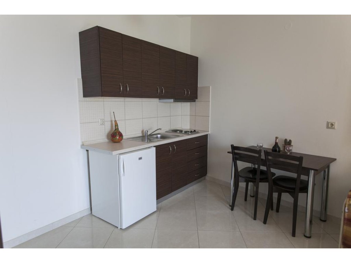 Gemütliches 2-Doppelbett-Appartement für bis zu 4 Personen und einem Baby mit Küche, Balkon, Duschbad und freiem Blick auf das Ionische Meer. Eine Außendusche, einen großen Steingrill, Obstbäume und einen Stellplatz für Ihren Mietwagen.Das Siarbas Hotel mit seinen 11 Appartements ist nur 5 Gehminuten vom Sandstrand entfernt. Es liegt auf einer Anhöhe und hat einen freien Blick auf das türkisfarbenen Ionische Meer West-Griechenlands. Eine Perle Griechenlands! Direkt am Sandstrand gelegen befindet sich auch die Siarbas-Taverne, welches Sie mit allen kulinarischen und landestypischen Speisen verzaubert. Aber auch für kleine Meze mit Ouzo oder Pita mit Frappe lädt dieses gemütliche Restaurant ein. Es erfolgt eine tägliche Reinigung der Zimmer, Handtücher und Bettwäsche werden alle 2-3 Tage gewechselt.Das Ionische Meer ist ein Teil des Mittelmeeres. Es ist benannt nach der altgriechischen Sagengestalt Io, einer Geliebten des Gottes Zeus. Im Ionischen Becken befindet sich das Calypsotief, die mit 5.267 Metern tiefste Stelle des Mittelmeers. Unmittelbar gelengen ist auch eines der drei Orakel aus der Antike, das Nekromanteion! Auch sehr zu empfehlen ist der Fluss Acheron, der zum verweilen und entspannen einlädt. Das Fischerdörfchen Parga mit seinen kleinen Tavernen und fangfrischem Fisch ist ebenfalls eine Reise wert. Der Strand von Loutsa / Vrachos liegt zwischen Parga und Preveza! Die "kleine" Bucht mit ca. 3 km Sandstrand lädt zum morgendlichen bzw. abendlichen Sparziergang ein. Aber auch für Sportler und Hundeliebhaber bestens geeignet. Das Türkisfarbene glasklare Meer wird auch Sie verzaubern. Es herrscht typisches Mittelmeerklima mit heißen trockenen Sommern und mäßigen Wintern. Das Ionische Meer ist bei Seglern für seine ruhigen Winde bekannt.