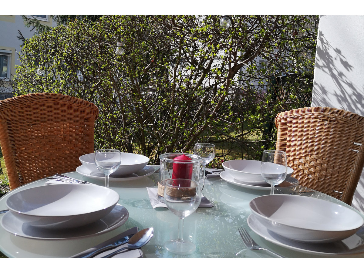Vermiete ein schönes Apartment von 35 qm im EG mit großer sonniger Terrasse in sehr guter Lage. Das Apartment besteht aus einem hellen Wohn/Schlafzimmer, einer separaten Küche mit Kühl/Gefrierschrank, Herd, Waschmaschine, Kaffemaschine, Toaster, Wasserkocher und Geschirr und Besteck. Ein Bad mit Bade/Duschwanne und ein Eingangsbereich mit einem geräumigen Einbauschrank. Es ist neu und modern eingerichtet. Ein hochwertiges Einzelbett (100 x 200 cm) von Samina Schlafsysteme sorgt für die perfekte Erholung. Eine weitere Schlafmöglichkeit bietet eine neue Ausziehcouch (190 x 140 cm). Ein Esstisch im Wohnzimmer für 2 Personen und ein Schreibtisch ergänzen das Wohnzimmer. WLAN-Anschluss und ein Fernsehgerät sind ebenfalls vorhanden. Die Terrasse ist mit einem Esstisch und einem Liegestuhl gemütlich zum entspannen und mit einer Markise zu beschatten.