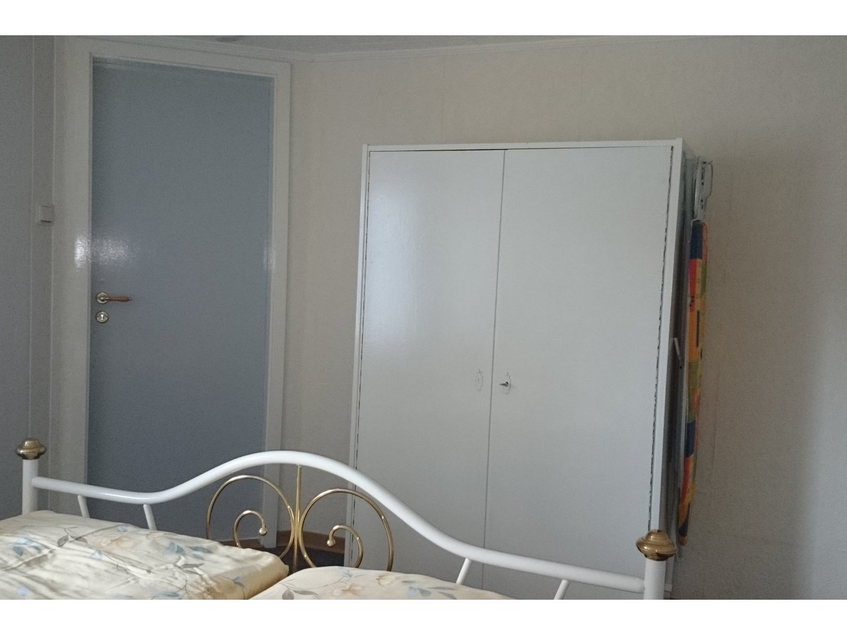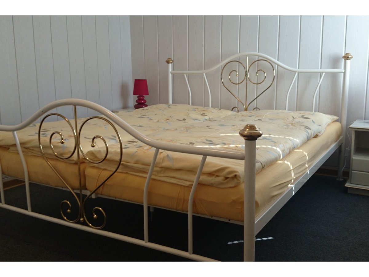 Das Haus verfügt über 2 Schlafzimmer. Das eine Zimmer verfügt über ein Doppelbett mit 2 einzelnen Matratzen der Maße 0,90 m x 2,00 m. Im zweiten Schlafzimmer steht ein Doppelbett mit durchgehender Matratze der Maße 1,40 m x 2,00 m.