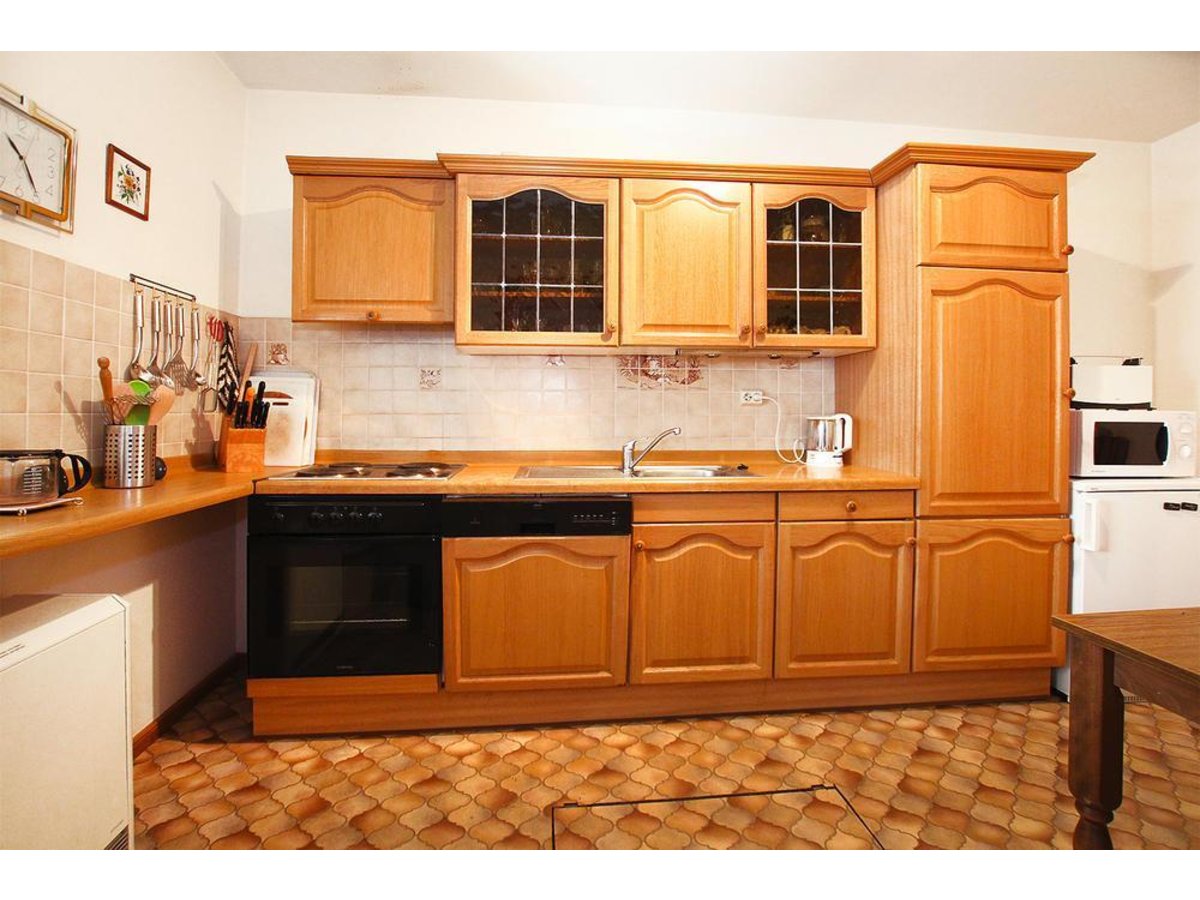- Küche im Erdgeschoss, Elektroherd mit Backofen, Kühlschrank, Geschirrspüler, Mikrowelle, Kaffeemaschine, Wasserkocher, Toaster