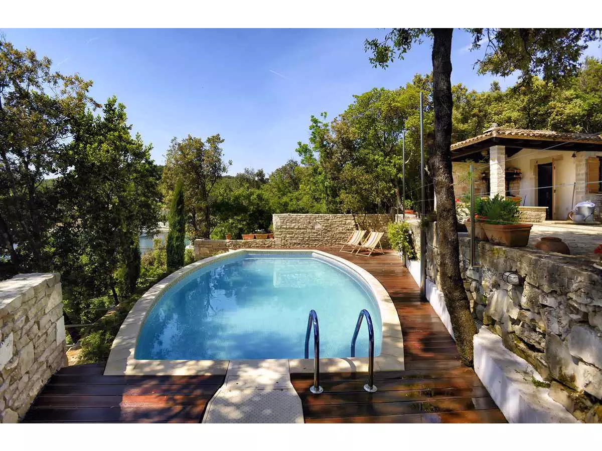 2 Schlafzimmer, 2 Badezimmer, abgeschl. Grundstück, Spülmaschine, See 20 m, Strand 60 m, Privatpool, Klimaanlage, Waschmaschine, Hund erlaubt