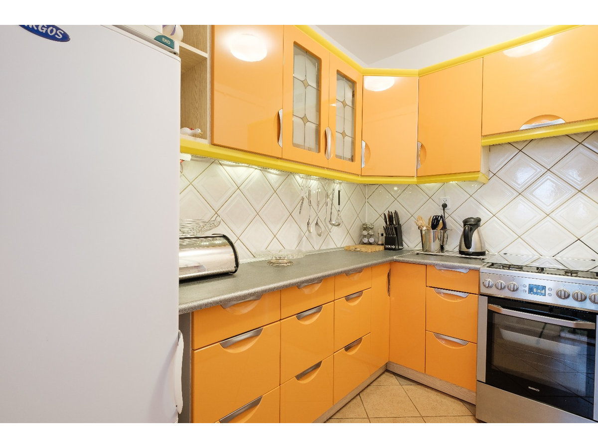 Der Strand von Jelitkowo kann zu Fuß in 12bis 15 Minuten erreicht werden. Die Zweizimmerwohnung ist für 3 Personen ausgelegt, hat einem kleinen Schlafraum für eine Person, einen Wohnraum mit ausklappbaren Bett für 2 Personen inklusive Fernseher. Des Weitern ist die Wohnung mit einem Ventilator, einer komplett eingerichteten Küche (inkl. Mikrowelle, Kühlschrank, Geschirrspüler), einem Bad mit Dusche, einer Waschmaschine und einer großen Garderobe ausgestattet. Nebenkosten, Handtücher, Bettwäsche und die Endreinigung sind im Preis inbegriffen.