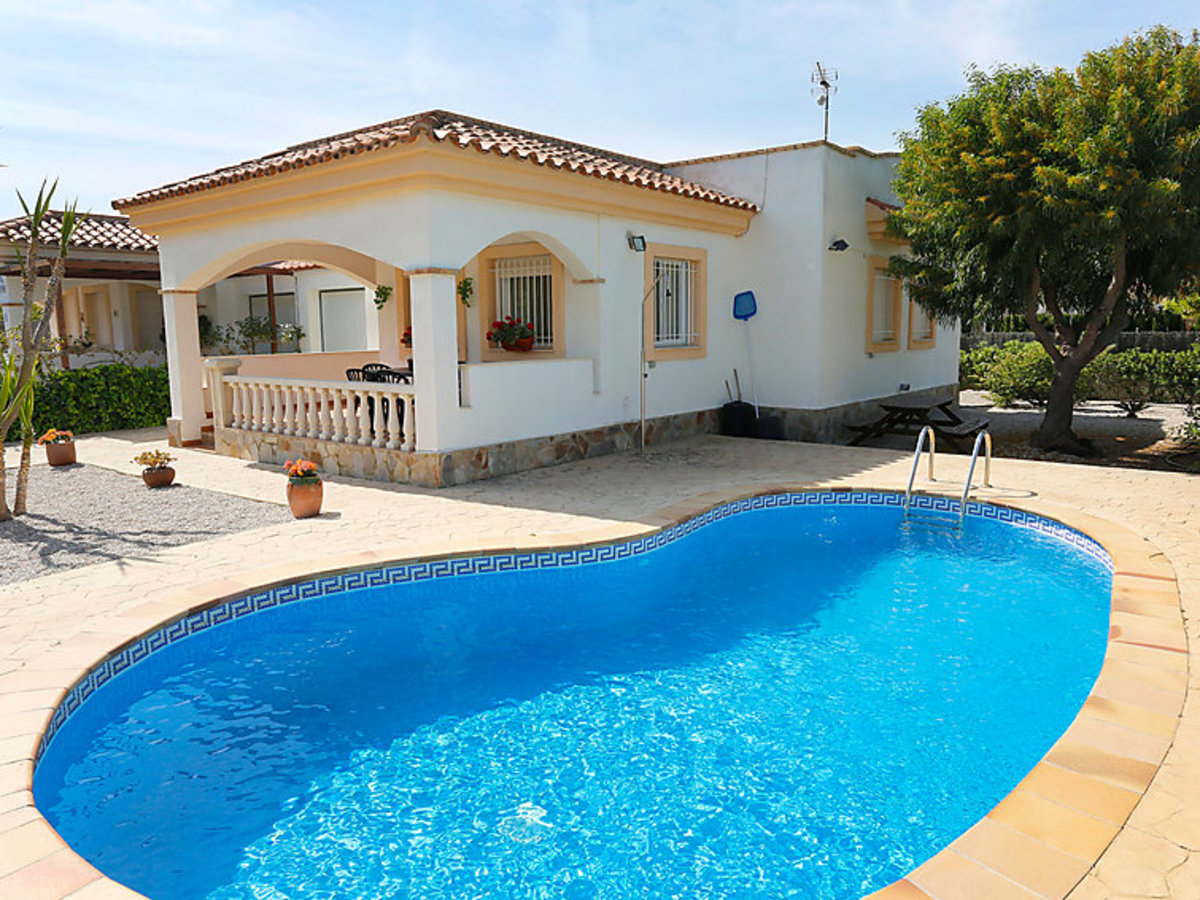 3 Schlafzimmer, 2 Badezimmer, abgeschl. Grundstück, TV, Meer 50 m, Sandstrand 50 m, Privatpool, Klimaanlage, Waschmaschine, Hund erlaubt