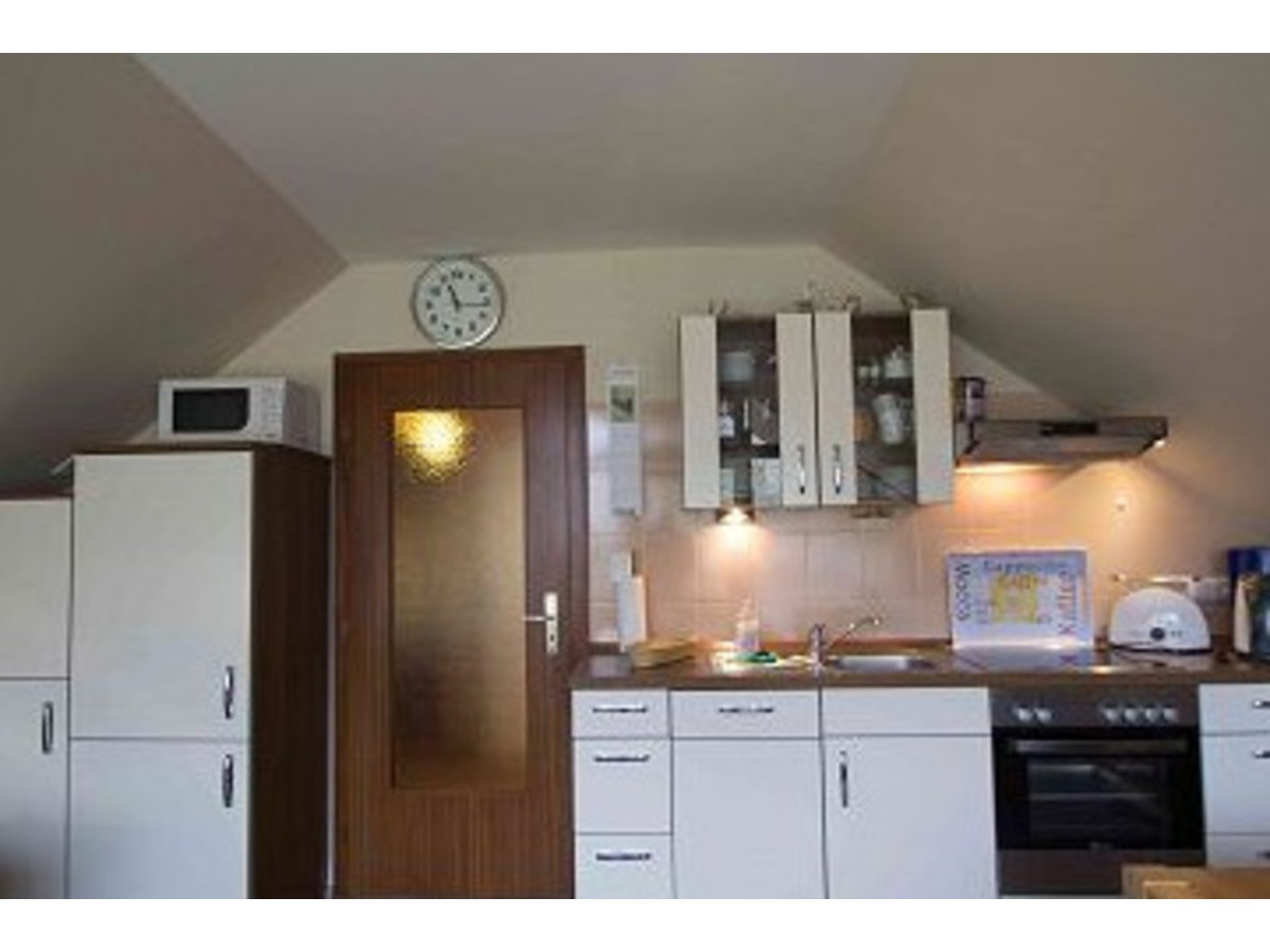 Die Küche verfügt über zahlreiche Einbaugeräte wie Kühlschrank mit Gefrierfach, 4-Platten-Ceranfeld mit Backofen und Spülmaschine. Zur weiteren Einrichtung gehören Kaffeemaschine,Toaster und Wasserkocher sowie eine umfangreiche Ausstattung an Geschirr und Küchenutensilien. Bügelmöglichkeiten finden Sie in der Wohnung.