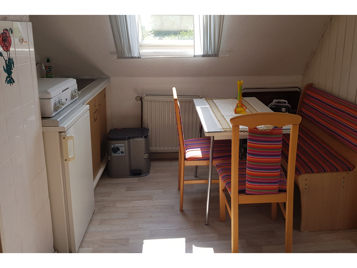 Ferienwohnung direkt am Jadebusen, Ebbe und Flut hautnah miterleben.Die Wohnung ist zweckmäßig eingerichtet, Wohn-Schlafbereich,kleines Kinderzimmer mit erhöhten Betten.Duschbad.Aussentreppe.