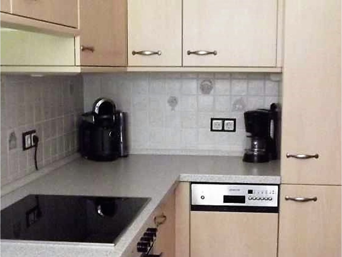 Die helle Einbauküche ist zweckmäßig eingerichtet und voll ausgestattet. Ein Geschirrspüler ist ebenfalls vorhanden ,sogar eine Kaffeepadmaschine sorgt für Abwechslung am Frühstückstisch.