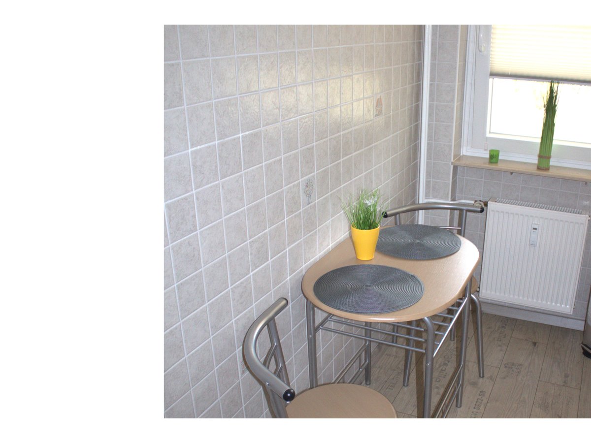 Sie wohnen in einer modernen und liebevoll eingerichteten Ferienwohnung im Erdgeschoß mit Holzterrasse. Sie erwartet ein freundlich gestalteter Wohnraum mit einem bequemen Ecksofa, einem großen Flachbildfernseher, DVD-Player sowie eine kleine Musikanlage mit Radio und CD-Player sind vorhanden. Der Essplatz bietet zwei Personen Platz.