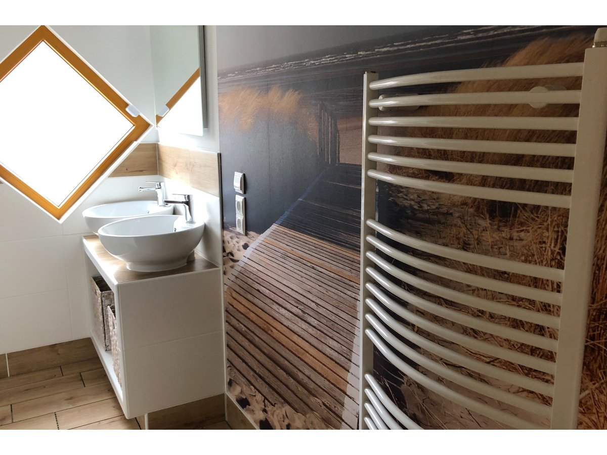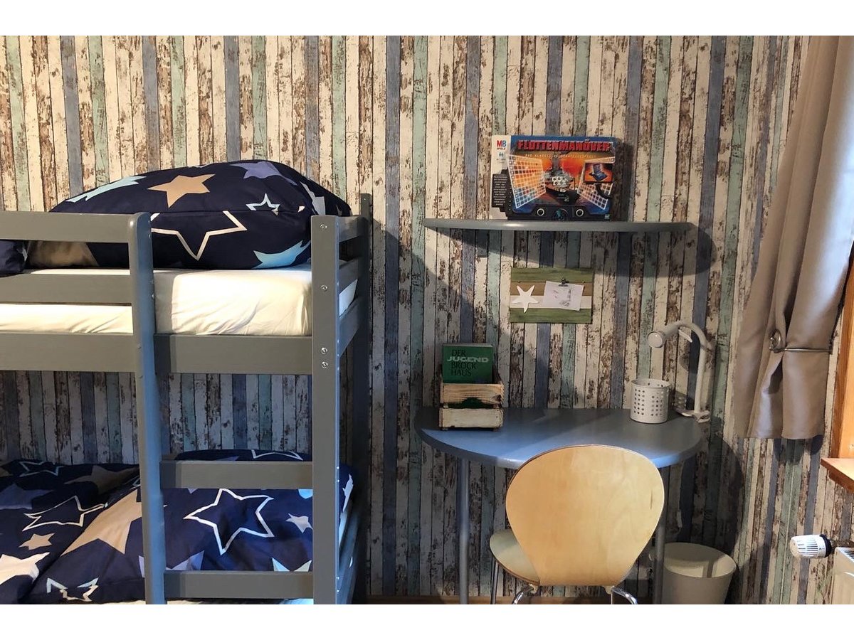 Unsere 3 Schlafräume sind ausgestattet mit einem Doppel-, einem Etagenbett mit ausziehbarem Schlafplatz, einem Einzelbett und einem ausziehbaren Schlafsofa im Wohnzimmer.